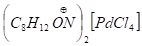 . The square planar coordination of the palladium atom is formed from three chlorine atoms and the formed tetraacidoanion ligand forms a hydrogen bond. The average length of Pd-Cl bond is 2,3030, there are no deviations from 900 valence angles of Cl-Pd-Cl. The palladium atom is not shifted from the plane coordination polyhedron (square) and therefore trance angles of Cl-Pd-Cl are 1800. Two different lengths -2,289
